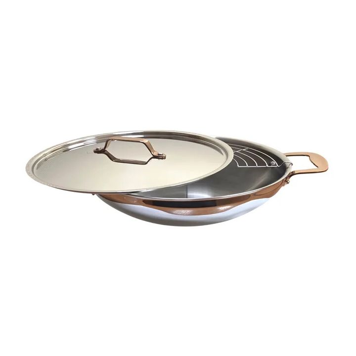 Вок серии Supreme Essence предназначен для быстрого приготовления на сильном огне. Глубокая округлая форма позволяет легко перемешивать ингредиенты, обеспечивая равномерное обжаривание без пересушивания. Идеален для блюд в азиатском стиле, овощей, лапши и мяса в соусе. Объем 4.2л, диаметр 28см, диаметр дна 12,5см, ширина с ручками 40,5см, высота без крышки 11,7см, размер ручки 9х5см, высота крышки 2,5см. Материал – нержавеющая сталь, отличающаяся высокой коррозионной стойкостью и долговечностью. Корпус – полированная сталь, ручки – с медным покрытием. Вок имеет удобную крышку, которая сохраняет тепло и ускоряет приготовление. Термодно выполнено по технологии Multidisc, благодаря которой тепло равномерно распределяется не только по дну, но и по стенкам изделия. Вок быстро нагревается и дольше сохраняет температуру, обеспечивая экономию времени и энергии. Подходит для всех типов плит, включая индукционные. Можно мыть в посудомоечной машине при температуре до 60 °C. Не используйте металлические губки для чистки ручек с медным покрытием. Сделано в Португалии. Преимущества: • глубокая форма для равномерного обжаривания и перемешивания; • подходит для приготовления блюд в азиатском стиле; • быстрый нагрев и сохранение температуры; • долговечность и устойчивость к износу.