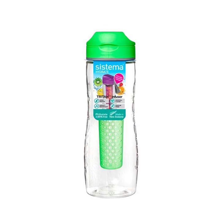 Эта бутылка для воды – идеальное решение для любителей здорового образа жизни. Внутри бутылки расположен съемный инфузер, который позволяет приготовить освежающие или фруктовые напитки, обогащенные витаминами, и взять их с собой.  Просто поместите в инфузер любимые фрукты, ягоды или пряные травы (например, мяту), налейте воду и через некоторое время вода приобретет приятный вкус и аромат. Также можно добавлять кусочки овощей (например, огурец). Вкусная и обогащенная полезными веществами вода - отличная альтернатива сладким и газированным напиткам.